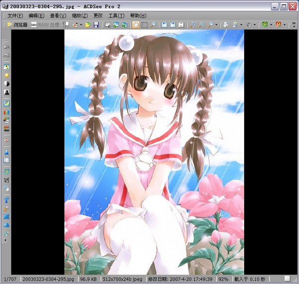 我目前使用的是ACDSee Pro 2的版本,除了看图之外,同时还有编辑图片的功能。这次的版本带有快速查看器,解决了以前启动速度惊人的毛病,而这是我曾经在ACDSee6时非常讨厌的毛病。