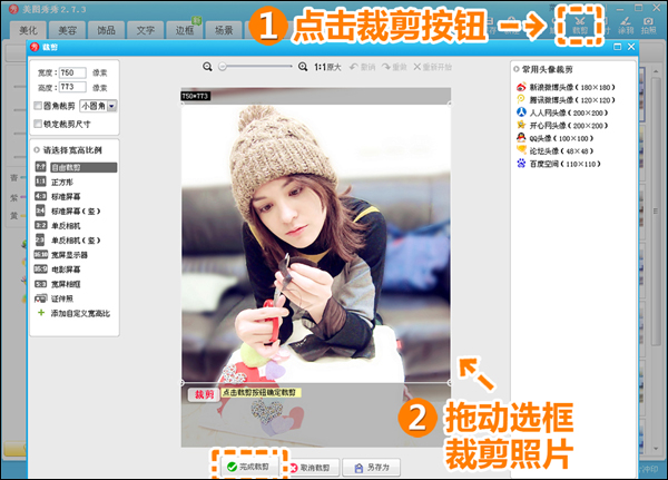 4、点击“裁剪”按钮,拖动矩形选框,裁剪掉照片上下多余的部分。