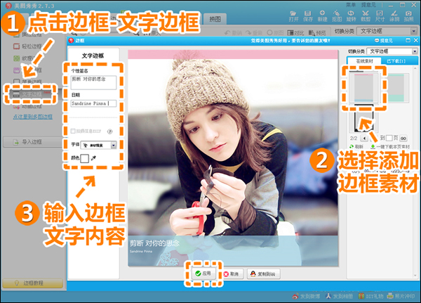 5、点击“边框” “文字边框”,给照片添加合适的边框素材及边框文字内容。