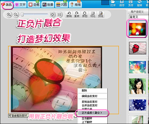 最重要的开始咯,要找一张炫彩的背景图导入用户自定义饰品中。