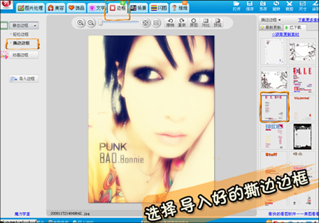 最后要加上杂志的边框。在撕边边框里选择已经导入好的杂志边框