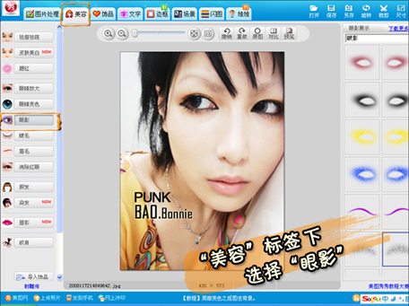 在“美容”的标签下选择“眼影”添加你所需要的眼影。