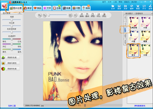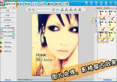 再进行影楼效果中的复古功能。让照片更加有味道些。