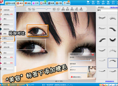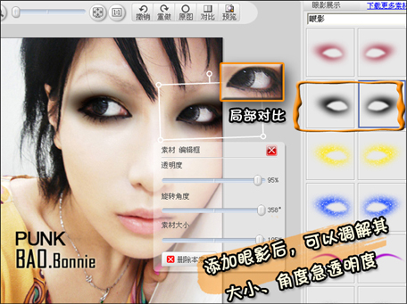 添加眼影后,可以调解其大小、角度急透明度。来增加其真实感。