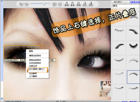 在所添加的饰品上右键选择,正片叠底。