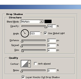 再选择layer / layer style / drop shadow,为该字加上阴影效果,在drop shadow面板的,设置的参数如图6所示。设置完后按OK完成操作。