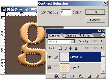 这一步为这个效果加上一点光泽。按ctrl + shift + N新建立一个图层,取名layer3。然后选择Select / Modify / Contract,在弹出面板里输入6,按OK完成操作。如图9所示。