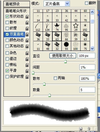2、选择双重画笔,我选的是 大油彩蜡笔63,调节数据如下。