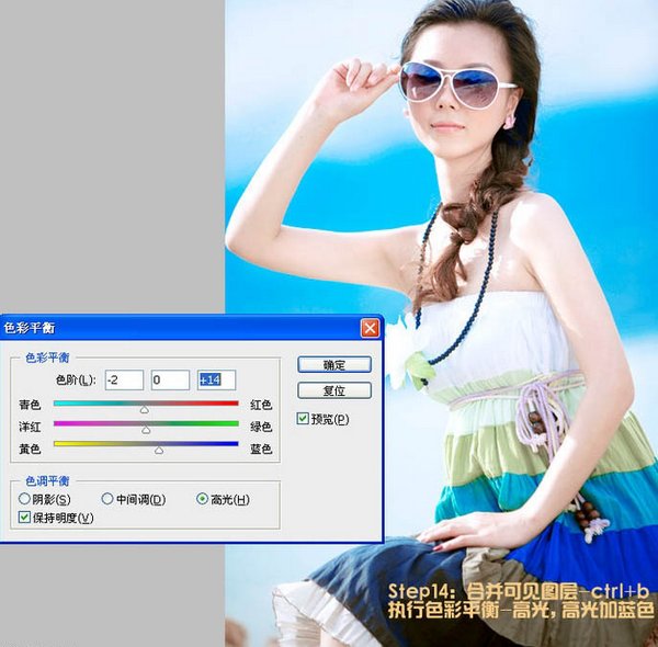 14、按Ctrl + B 调整色彩平衡,对高光进行调整,参数设置如下图。