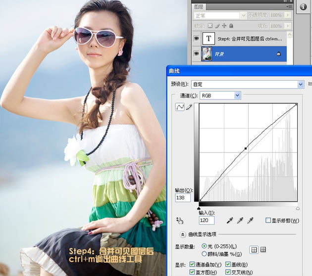 4、合并可见图层后按Ctrl + M 调整曲线,适当调亮一点。