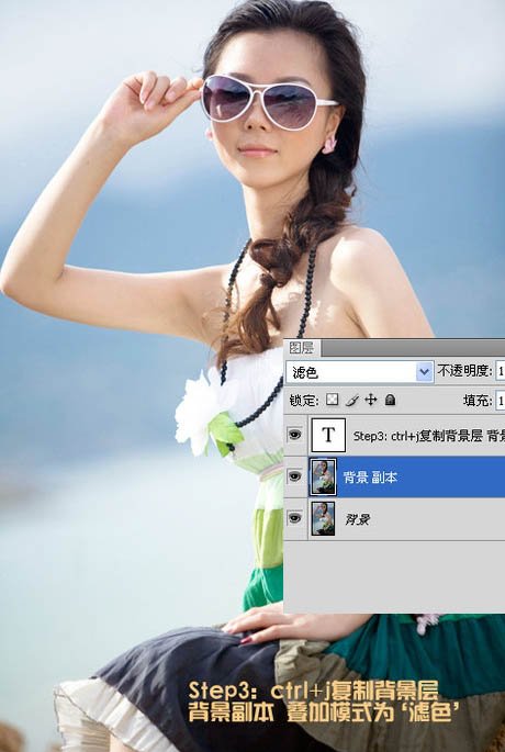 3、按Ctrl + J 把背景图层复制一层,得到背景副本图层,混合模式改为“滤色”,效果如下图。