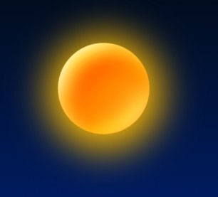 4、新建图层,并移动到太阳图层下面, ctrl+太阳图层出现选区,羽化(30)填充颜色。