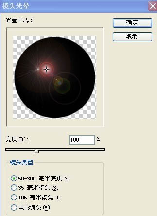 11、在黑色选区内使用镜头光晕(滤镜 > 渲染 > 镜头光晕)。