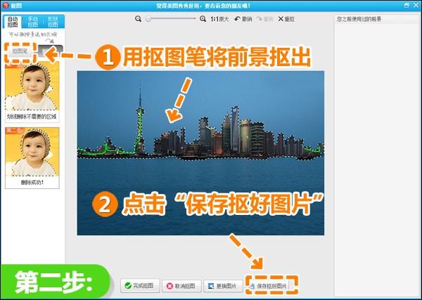 2.用抠图笔将要抠取的前景图抠出,然后保存抠好的图片,点击“取消抠图”。