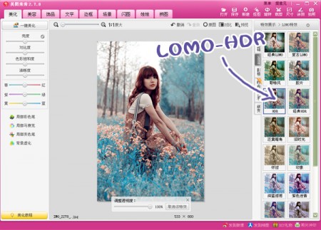 第二步:接下来在“LOMO”特效中选择“LOMO-HDR”。