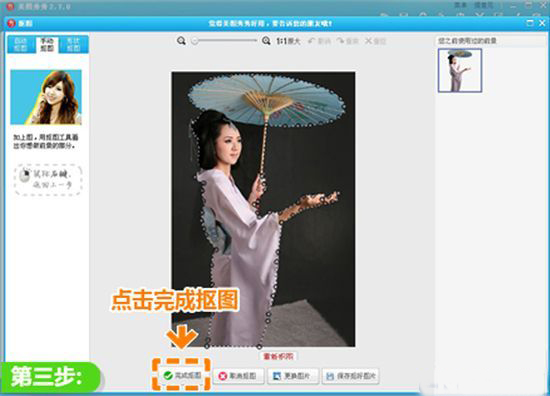 2.接着沿着人物边缘取点,抠出人物。扣完后还可以做些整体上细微的调整。