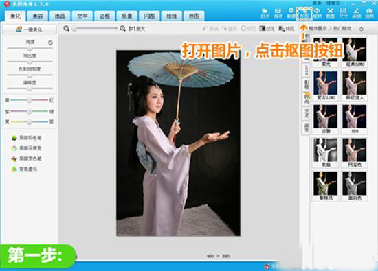 1.在“美图秀秀”软件下打开待处理的照片,点击“抠图”按钮,选择“手动抠图”。