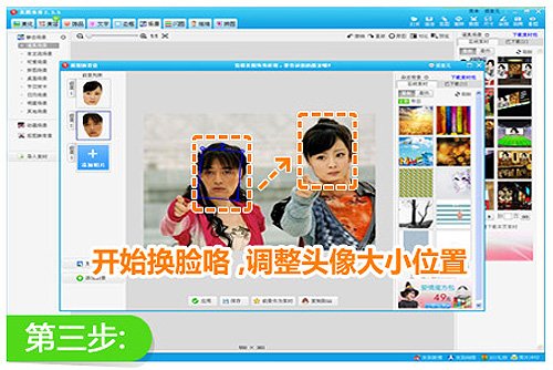 3、现在就可以开始换脸啦,男女互换嘿嘿,记得要调整头像的位置和大小哦。