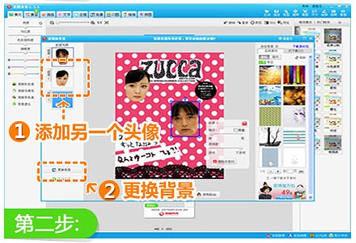 2、抠好第一个头像后,再次添加另一个头像,然后更换背景,就是换成第一次打开的原图啦。