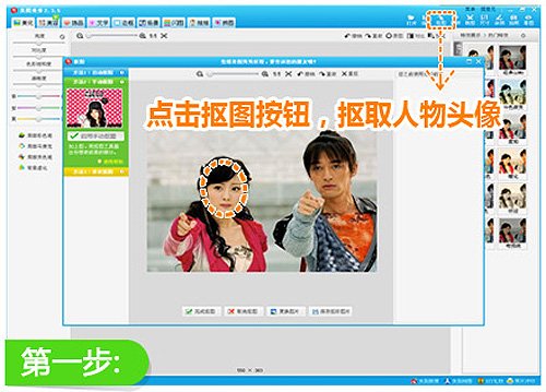 1、打开美图秀秀软件,点击“抠图”工具,沿着人物头部轮廓抠出头像。