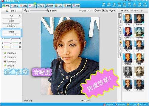 怎么样?如果不是亲眼看到的,很难相信吧!只能惊叹“美图秀秀”的美容功能太强大了,如此腐朽化神奇的作品也能做的如此自然逼真,这以后再遇到网络美女可要看的仔细哦!