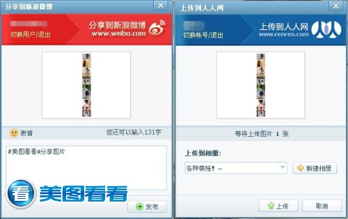 使用美图看看浏览图片只占用很少量的内存,CPU的占用也降到最低,因此即便是低配置的电脑也可流畅浏览高清大图,这正是美图看看“很快”的特色。而本次新发布的美图看看2.1.0版在微博分享等网络功能基础之上(如图02),新增超长图浏览优化功能,则又将美图看看“好用”的特色体现得更为突出。