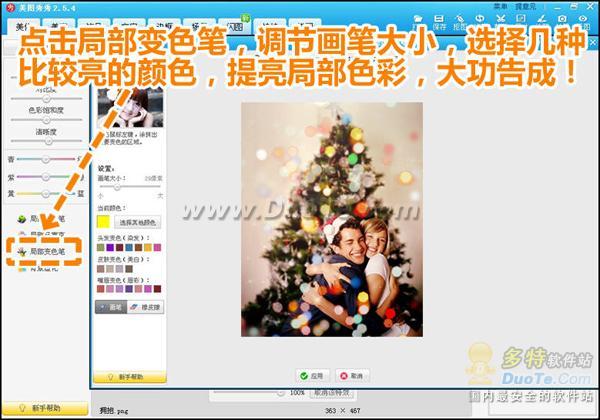 5.最后点击“局部变色笔”,调节画笔大小后选择比较鲜艳的颜色,涂抹局部细小地方,让色彩更加丰富炫丽,可以对灯光效果起到画龙点睛的作用。