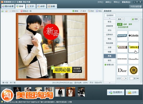 作为一款专为网店卖家设计的网店图片批量处理软件(界面如图01),美图淘淘相比其他同类软件来说,简单易用轻松上手,商品图片可一键美化,批量生成;而且可以批量添加超实用的海量装饰素材。更重要的是,针对淘宝卖家的实际应用,美图淘淘还与淘宝网官方合作,推出了一键上传宝贝图到淘宝网图片空间的功能,使得卖家们编辑宝贝详情、发布商品促销信息的操作变得更便捷。