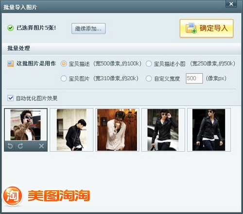 如图02所示,美图淘淘不仅可以批量导入图片,而且在导入后即可先进行批量预处理,让处理后的宝贝图片更符合网店的使用实际。