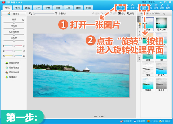 比如下图中,海平面的歪斜略微影响了照片的美感和意境,这些功能都可以在“美图秀秀”中只轻松解决,让构图变得更完美哦!