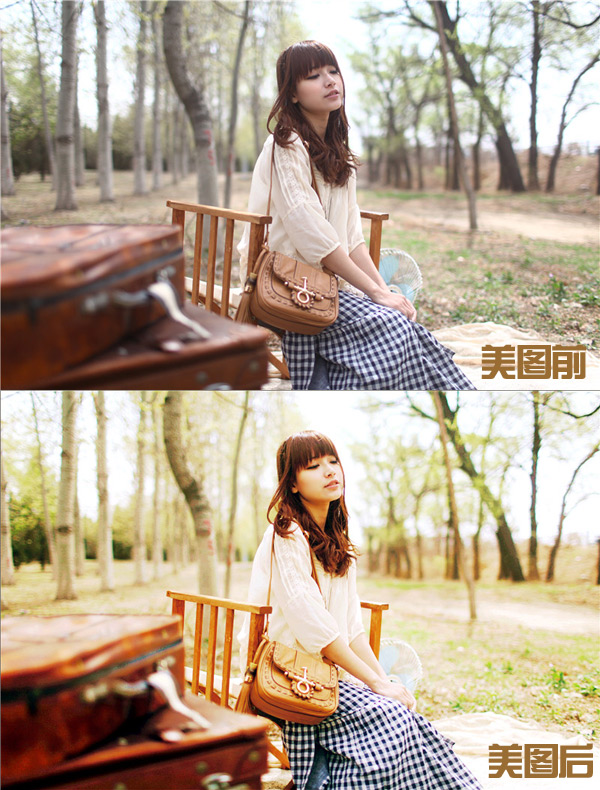 作为模特,YUMMY经常拍摄不同风格的照片。最近流行森林系列,YUMMY也想试一试。然而大森林拍出来的照片显得十分萧瑟,色调不够唯美。还好有“美图秀秀”的后期调色,让一个普通的场景变成唯美森林系的FEEL哦!