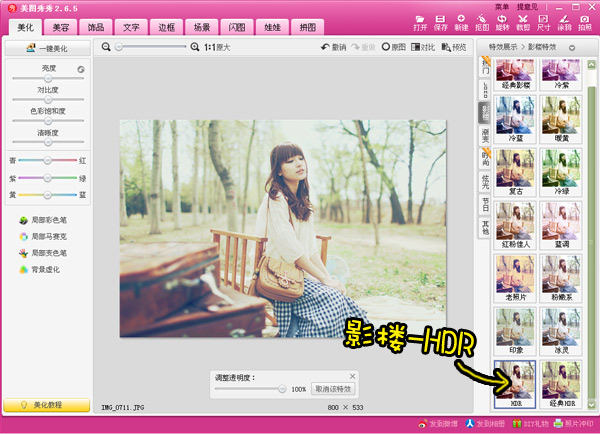 第二步:然后继续在“影楼”分类下选择“HDR”特效。