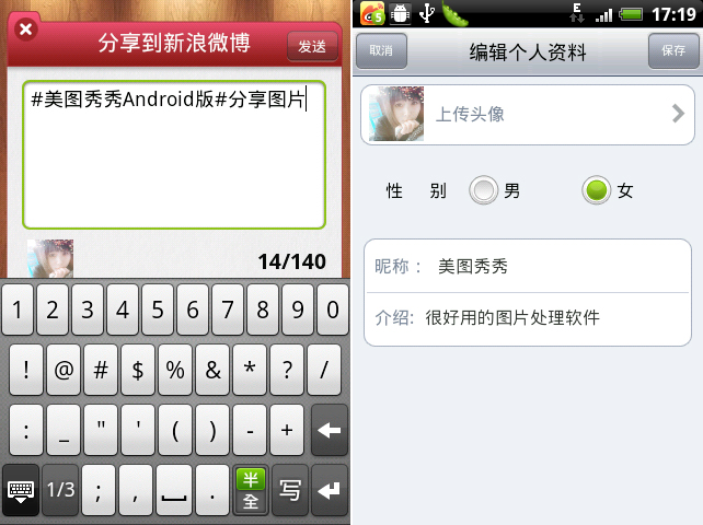 一张精致的图片处理好后,点击右上方绿色勾确定,在新窗口中点击上方的“保存到相册”,就能将图片保存到手机上,稍后可以直接在微博客户端调用已保存好的图片作为头像。同样,点击下方的“分享到新浪微博”就可以直接通过微博发布了。