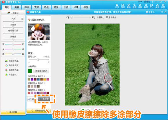 2.点击“橡皮擦”按钮,擦除画笔误涂的部分(图3)。