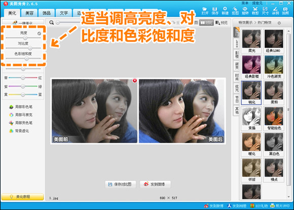 暗淡粗糙的手机照经过美图秀秀的美化后,质量是不是改善许多?处理方法简单又实用,爱自拍的MM们不要错过哦,快来拯救你的低画质手机美照吧。