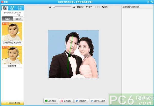 美图秀秀可以实现自动抠图、手动抠图和形状抠图三种不同方式的抠图应用,用户使用体验也非常不错。新版软件进一步优化了自动抠图的处理速度,抠图速度缩短到1~2秒,即便是高清数码大图,也能很轻松的完成即时抠图应用,如图4所示。