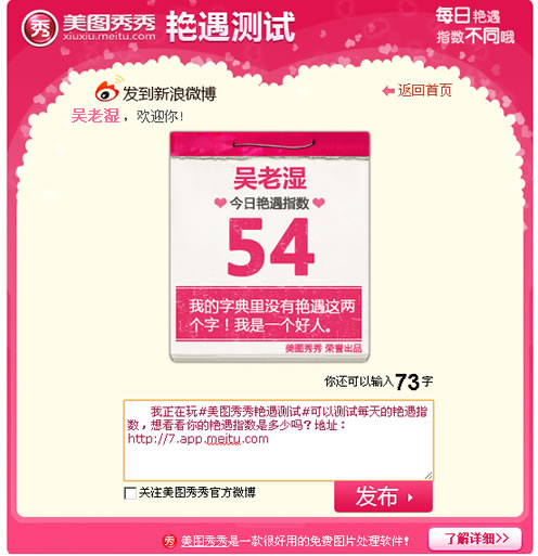 呵呵,好玩吧!!还可以发表到新浪微博哦: