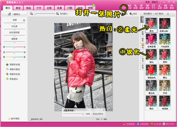 第一步:打开要处理的图片,先进行基本的色调处理,柔光加锐化一下。