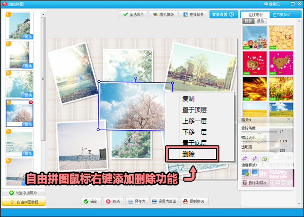 2.自由拼图时,点击鼠标右键添加删除功能。