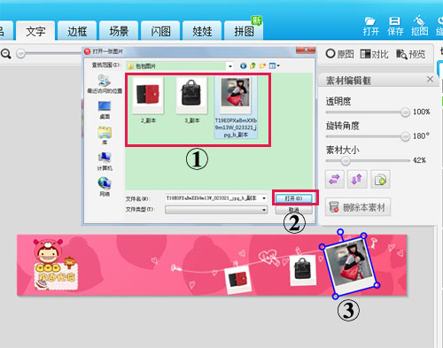 小贴士:为了效果好看,宝贝图片可以事先选择用“边框”素材装饰一下。只需到“边框”菜单下选择一些简单的边框即可。