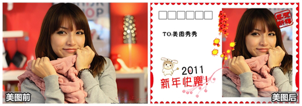 “美图秀秀”软件自带明信片背景,制作过程很简单哟,快来看看吧: