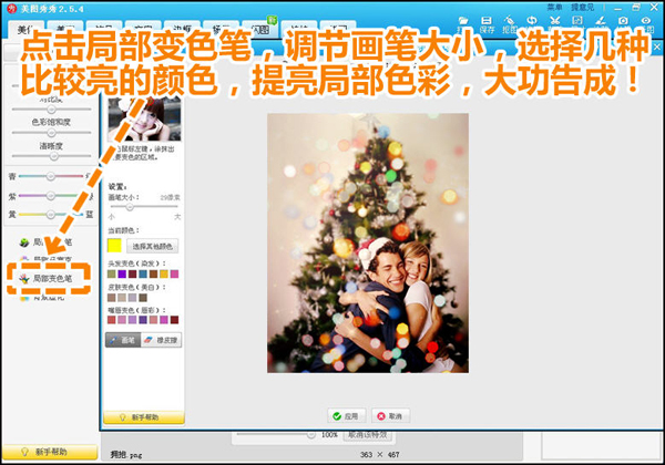 5.最后点击“局部变色笔”,调节画笔大小后选择比较鲜艳的颜色,涂抹局部细小地方,让色彩更加丰富炫丽,可以对灯光效果起到画龙点睛的作用。