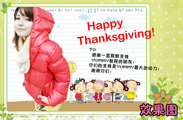 转眼又到了一年感恩节,今年Yummy曾因工作原因暂停了一段时间的美图教程,后来等一切安排妥当后,马上又回归到自己最喜欢的图片处理教程上来,期间也多亏了喜欢Yummy教程的朋友支持和美图秀秀的帮助。在这个感恩节,以教程的名义,向所有默默支持Yummy的朋友真诚地感恩,你们的支持是我最大的动力。感谢有你们!
