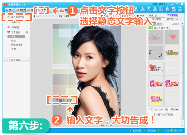 6、最后进入“文字”菜单下,选择“输入静态文字”给图片添加一些文字即可。如图7所示。