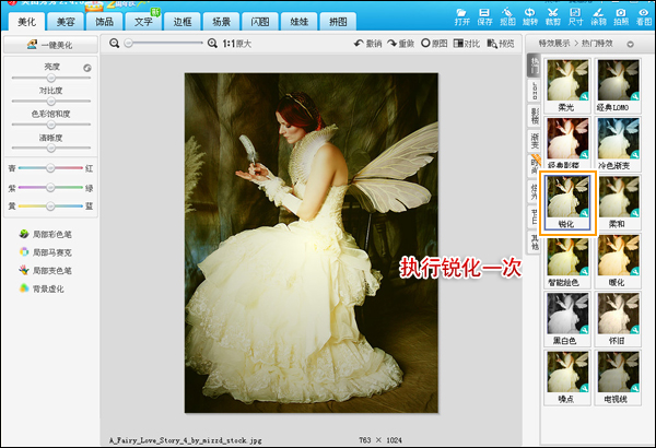 3、“泛黄暗角”特效执行之后,再执行“锐化”一次,加强细节呈现。