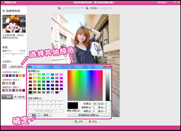 2、在颜色选择器中选择自己喜欢的颜色,就可以用画笔在相应的地方涂抹。