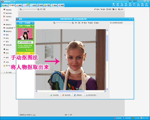 然后运用“抠图”工具,将已经变亮的前景人物部分抠取出来备用。