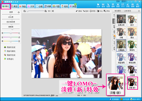 接下来用一个“经典LOMO”和“淡雅”特效,就能让照片色调变得正常了。不过大家还是要看照片的曝光程度多做调整哦。