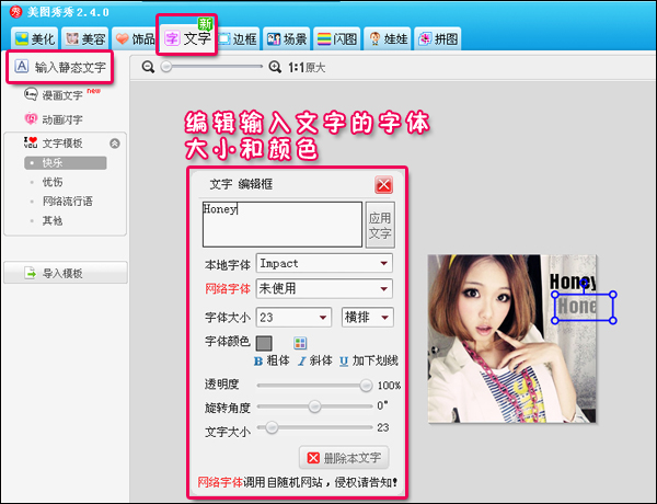 4、裁剪完成后,可以去“文字”菜单下,给头像添加一些自己喜欢的文字。如图5所示。当然可以选择一些饰品素材点缀图片。