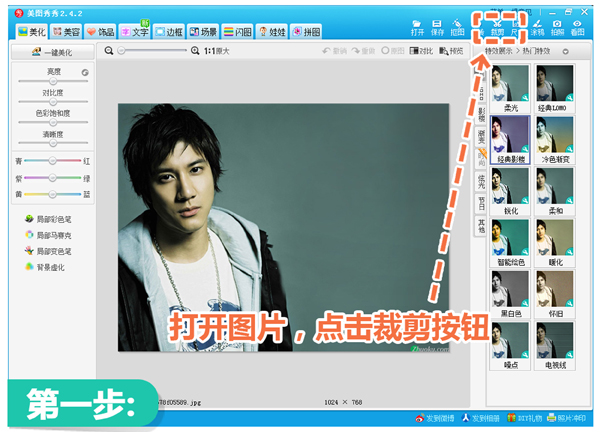 1.先用美图秀秀随意打开一张照片,点击“剪裁”功能按钮。